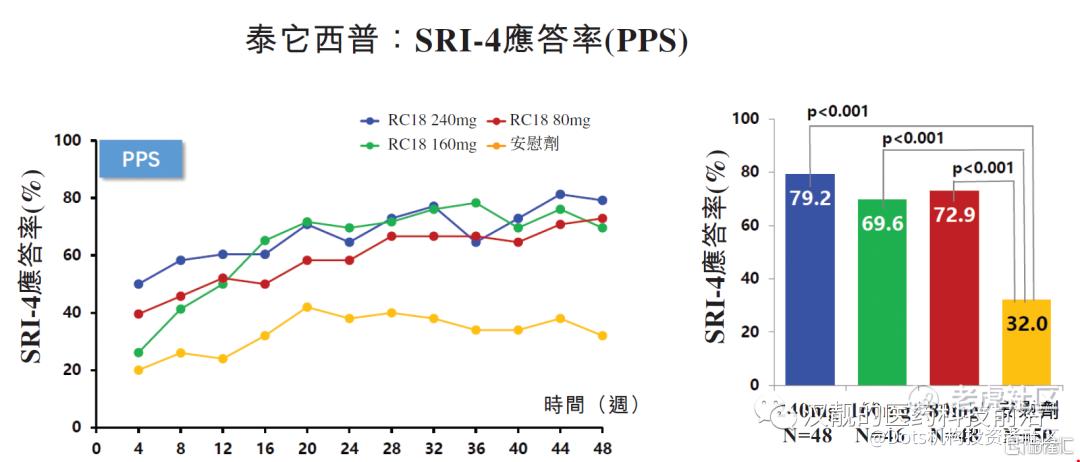 图4:泰它西普在SLE临床IIb期的有效性结果(FAS分析和PPS分析)