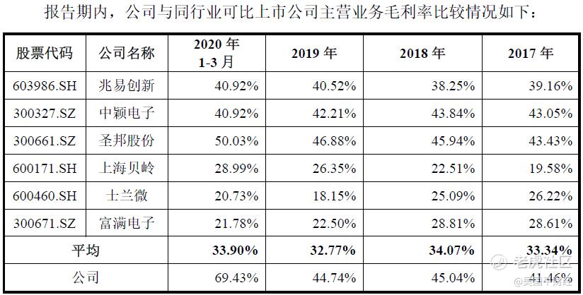 公司的毛利率处于行业领先水平,仅次于圣邦股份。
