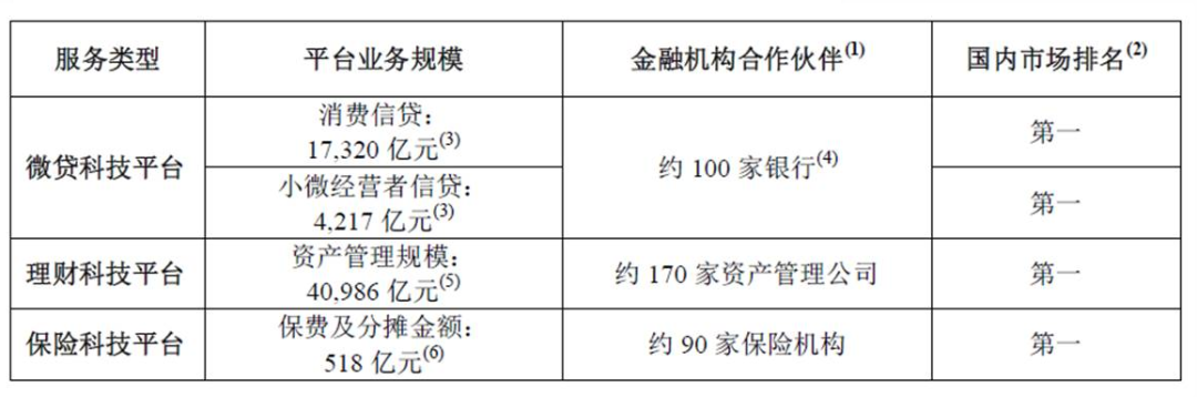 通过微贷科技平台、理财科技平台和保险科技平台,公司为金融机构合作伙伴提供高质量的用户触达与洞察。