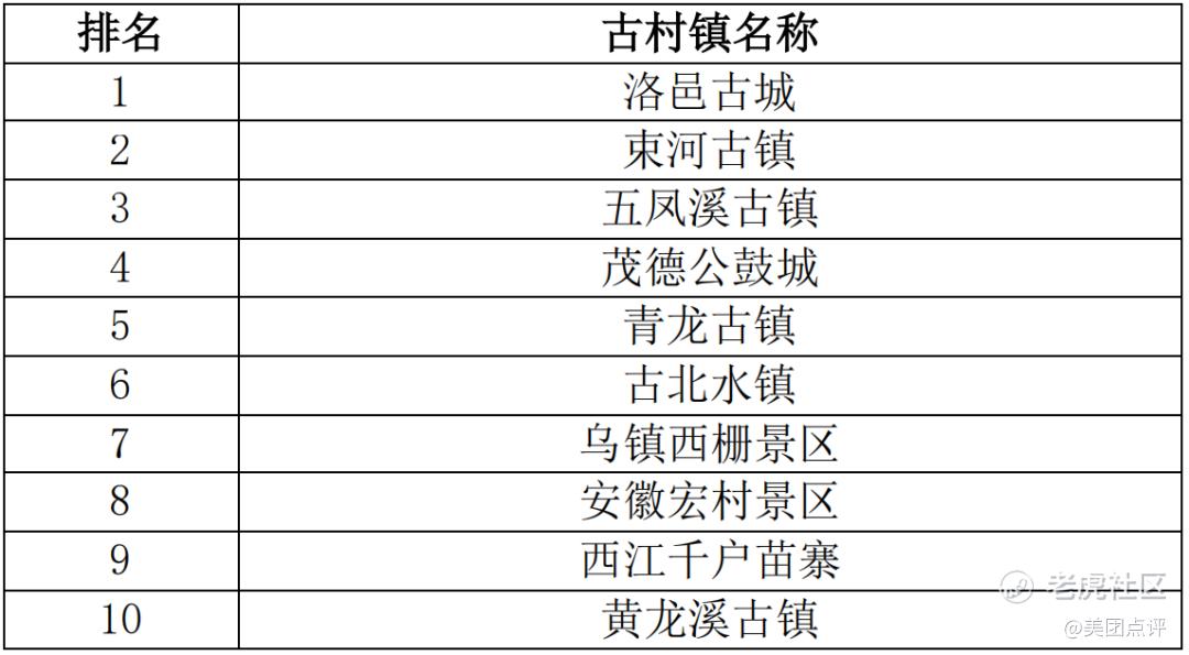 国庆假期期间具有浓郁地方特色和文化底蕴的古村镇将继续受到广大消费者欢迎,洛邑古城、束河古镇、五凤溪古镇、茂德公鼓城、青龙古镇、古北水镇、乌镇西栅景区、安徽宏村景区、西江千户苗寨、黄龙溪古镇等古村镇分列国庆期间热门榜单前十位。