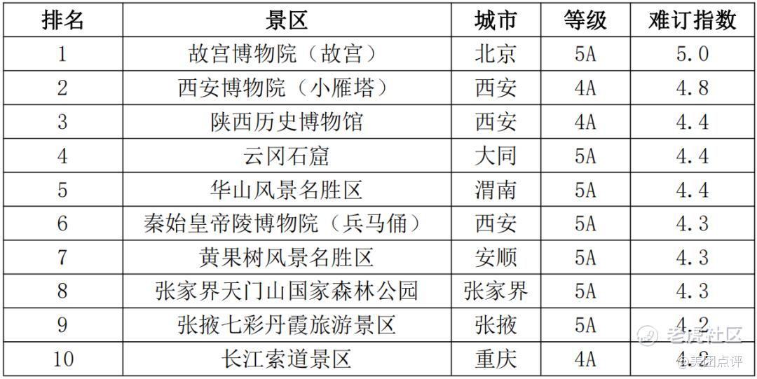 表6 国庆假期期间景区难订榜TOP10预测