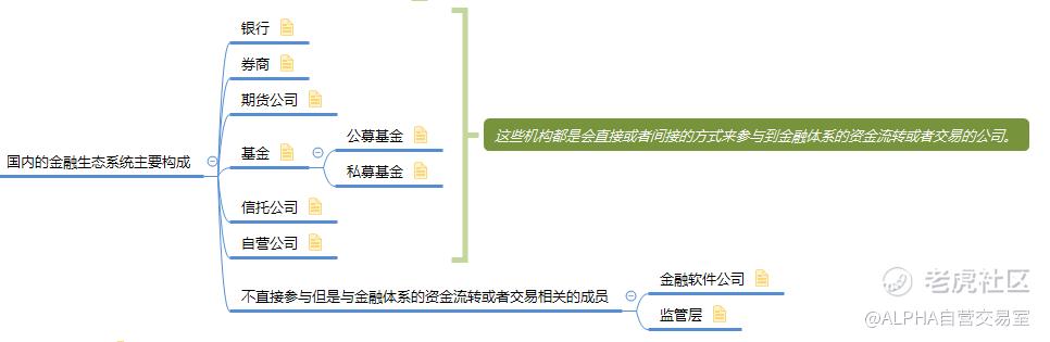 要了解国内量化交易的现状,首先要从国内的金融生态体系的构成开始,去了解我国在金融这一块的机构组成,知道我国量化交易会在什么机构发展。