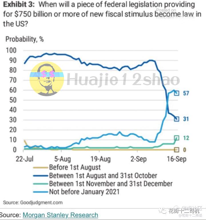 在美国两党的不懈努力下,大家对财政刺激在大选前落地的信心越来越弱,认为2021年1月之前都够呛的越来越多。。。