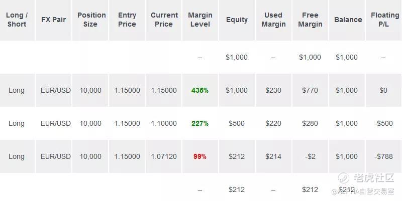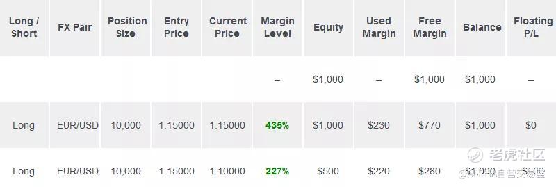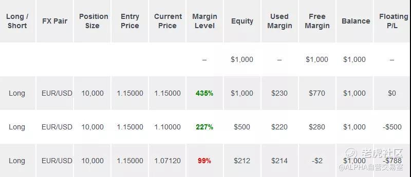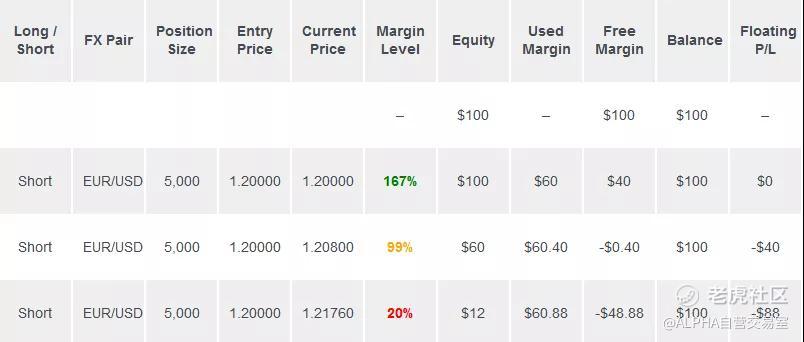 在这个交易场景中,假设你的经纪商的保证金通知水平为100%,止损水平为20%。