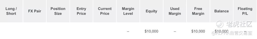 净值 = 余额 + 浮动盈亏$10,000 = $10,000 + $0