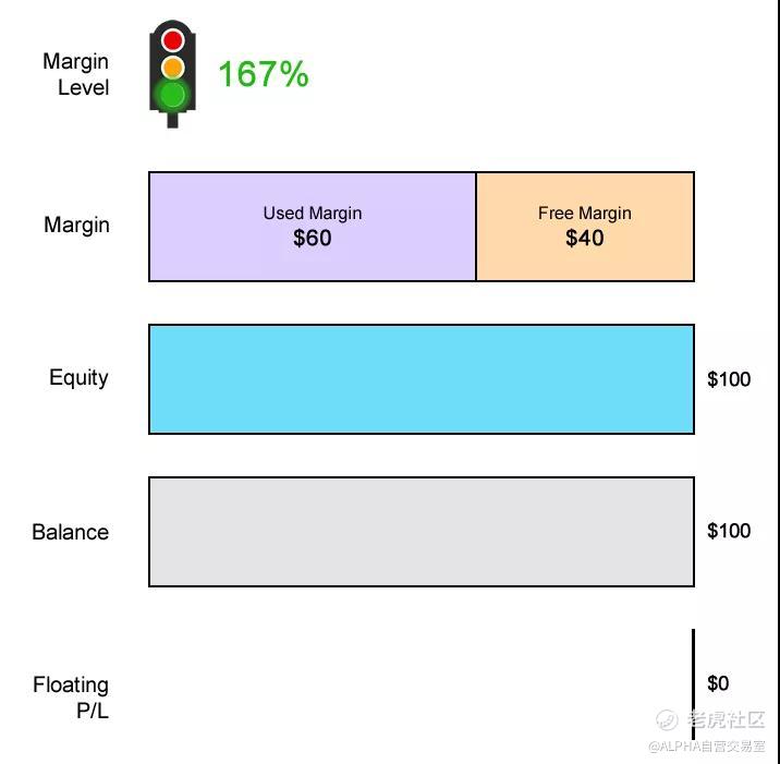 保证金水平 =(净值 / 已用保证金)× 100%167% = ($100 / 60) × 100%