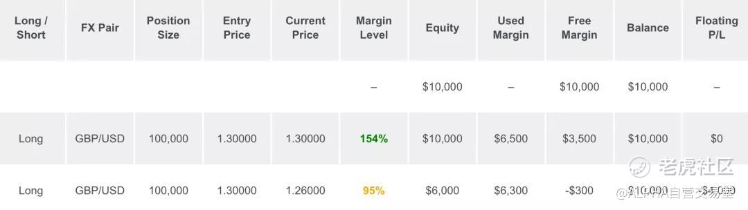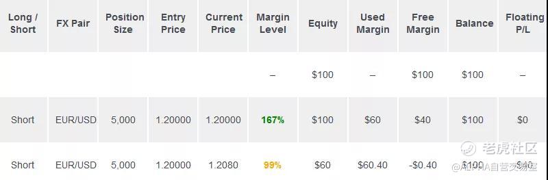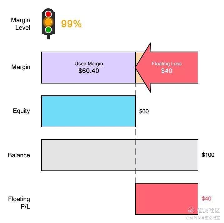 保证金水平 =(净值 / 已用保证金)× 100%99% = ($60 / $60.40) × 100%