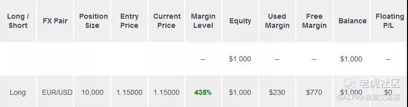 假设价格朝着对你有利的方向发展,你现在的头寸是盈亏平衡的。这意味着你的浮动盈亏是0美元。让我们计算一下你的净值: