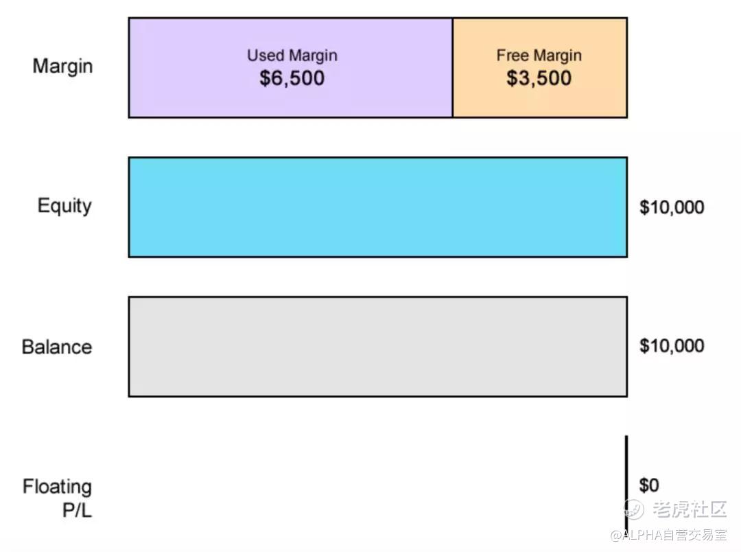 可用保证金 = 净值 - 已用保证金$3,500 = $10,000 - $6,500