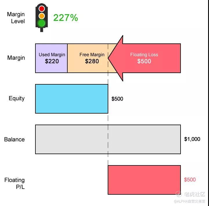 保证金水平 = (净值 / 已用保证金)× 100%227% = ($500 / $200)× 100%