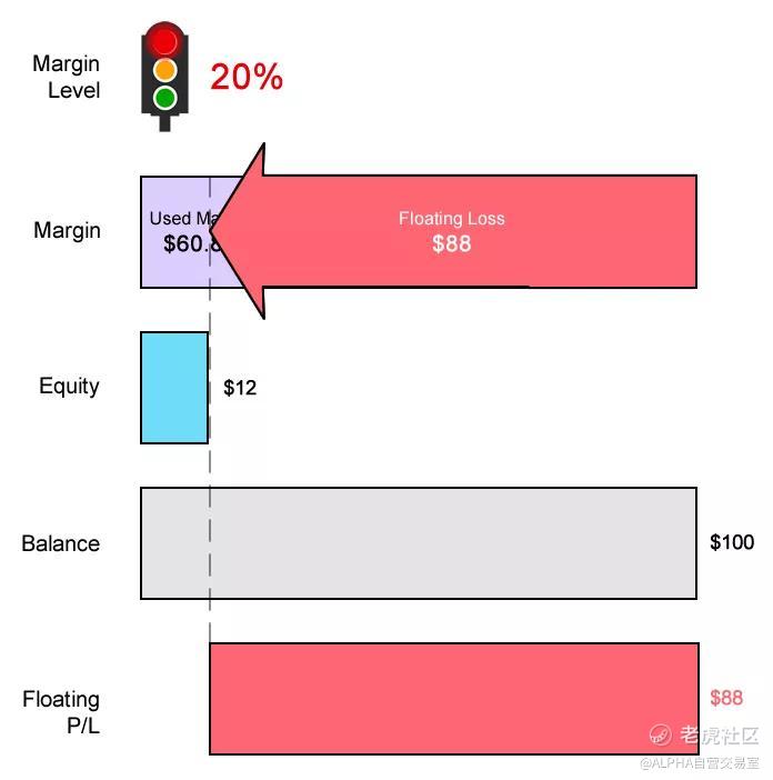 保证金水平 =(净值/使用保证金)× 100%20% = ($12 / $60.88) × 100%