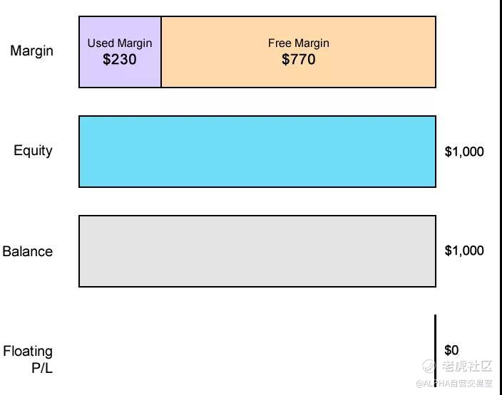 可用保证金 = 净值 - 已用保证金$770 = $1000 - $230