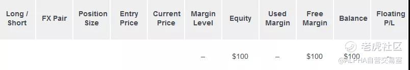 净值 = 余额 + 浮动盈亏 = $100 + $0 = $100