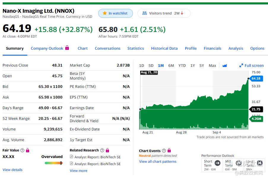 $Nano-X Imaging Ltd.(NNOX)$ 是一家要颠覆百年历史的X光片的科技公司,股价从上市的21美元,暴涨300%到64美元,完全不受大盘的拖累,逆势上涨。自从19世纪末诺贝尔奖得主威廉·伦根(Wilhelm Roentgen)发现X射线以来,这行业再也没有人去创新过。马斯克比较忙,不然他也去搞个新X光技术