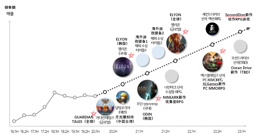 在自研能力的提升上,Kakao Games的策略也分为三个板块:开发人才、开发IP与开发能力。开发人才方面主要是Kakao Games通过XLGames的收购吸收了以韩国网游第一制作人宋在京的加入。宋在京团队在韩国游戏业界拥有较高的声望,曾开发了韩国头部游戏IP《天堂》与《风之国度》,当前宋在京团队正在进行Multi Device MMORPG游戏的开发,同时还计划将游戏从PC、手游扩展至主机、AR/VR领域。对Kakao Games来说,知名游戏团队的加入能够显著提升外部对其开发能力的认可。