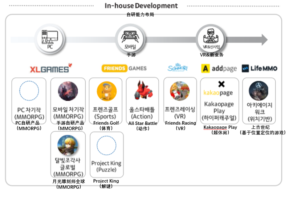 基于XL Games的收购以及子公司Friends Games的设立,2019年开始Kakao Games进入一个新的发展阶段,以投资、兼并购不断增强公司的开发力量,形成了新阶段Kakao Games的战略重点。