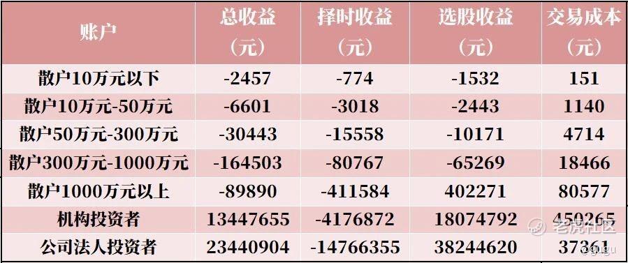 一,择时:机构和散户都亏钱。投资者无论散户还是机构,在择时收益这一项都是负的。依据短期的涨跌去做频繁的交易,最后带来的反而是负贡献,越想赚到短期的快钱,反而失去的更多。