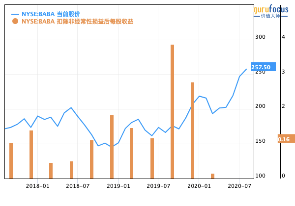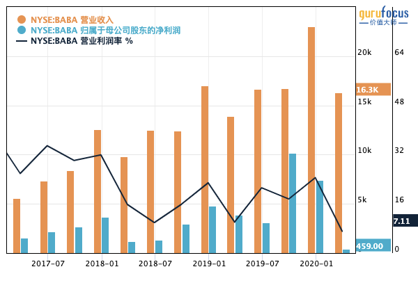 本季度摊薄每股收益为17.36元人民币,约合2.46美元,超过华尔街给出平均预期1.54美元。值得一提的是,过去两年内,阿里巴巴的公布的每股收益均超出市场预期,公布的营收7次超出市场预期。