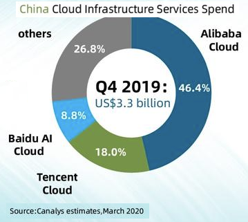 并且值得肯定的是,阿里在国内云计算的地位可以说是首屈一指,远远超过其他竞争对手。据IDC统计,阿里云在中国市场上连续四个季度实现市场份额的增长,占总体市场的42%。不仅如此,在全球市场中,阿里云的市场份额从2018年的7.7%上升至2019年的9.1%,位列全球第三。在亚太市场上,阿里云市场份额排名第一,从2018年的26.1%上升至2019年的28.2%,接近亚马逊与微软总和。