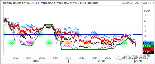 图:美债三十年、十年、五年、两年日元和联邦基准利率