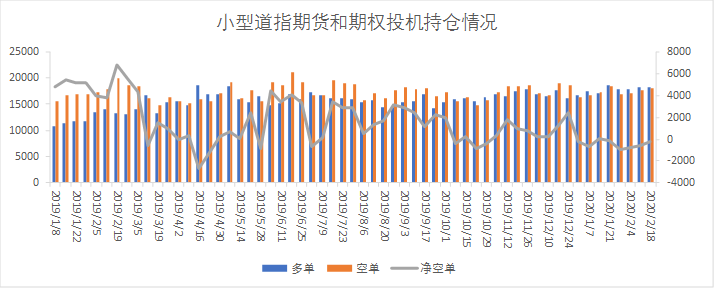 从持仓量情况来看,迷你纳斯达克100、小型道指投机持仓量分别增加2682手、412手,迷你标普500投机持仓量减少92手;从净空单变化来看,小型道指、迷你标普500、迷你纳斯达克100股指期货净空单分别较前周增加344手、5316手、1162手,空头力量小幅增加。