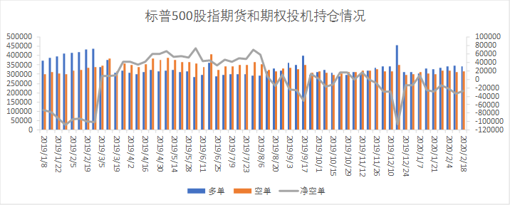 美国商品期货交易委员会(CFTC)公布的数据显示,截至2月18日当周,投机头寸在E-迷你标普500股指期货及期权的持仓由净多持仓33400手减少至28084,多单减少2704手,空单增加2612手;E-迷你纳斯达克100指数期货及期权净空单数量由6273手增加至7435,多单增加760手,空单减少1922手;道琼斯($5)期货期权净多持仓581手减少至237手,多单增加35手,空单增加378手。