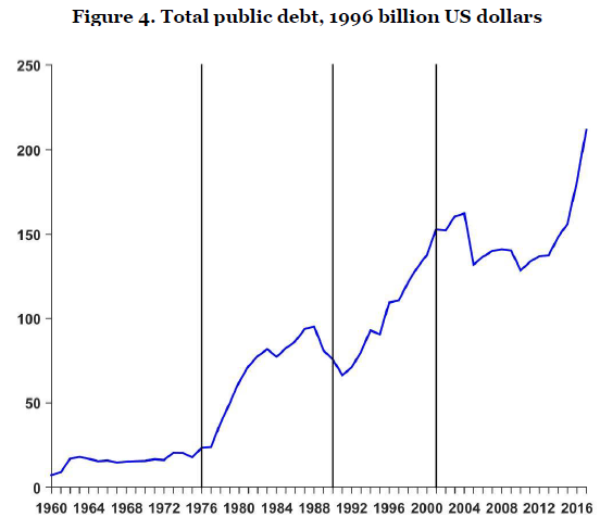 图4 阿根廷公共债务总量,以1996年美元计价