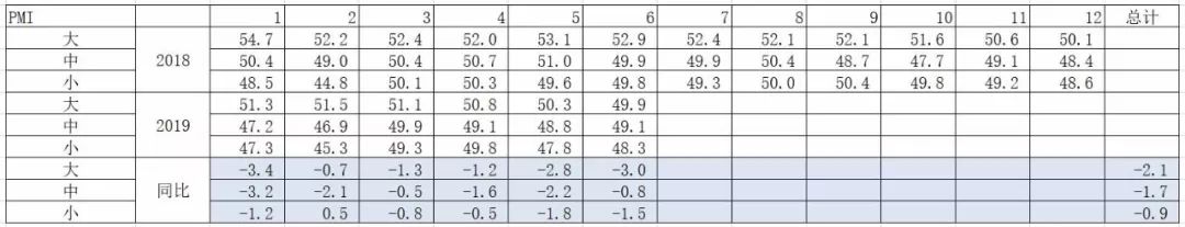 这是去年和今年大中小企业的PMI情况。相比去年上半年,大型企业PMI平均下降2.1,中型企业下降1.7,小型企业下降0.9。