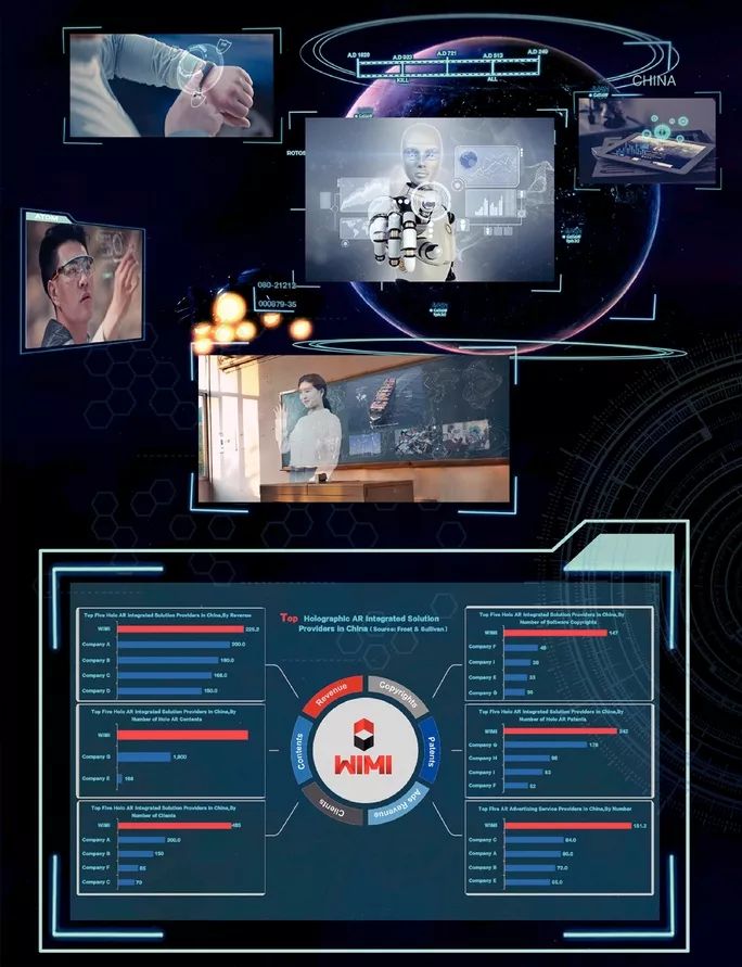 此外,根据Frost &;Sullivan的数据,2018年,微美在国内所有全息AR解决方案提供商中建立了最全面、最多元化的全息AR内容库,在收入、客户数量、全息AR内容以及全息AR专利和软件著作权数量方面,微美全息云在中国全息AR行业排名第一。
