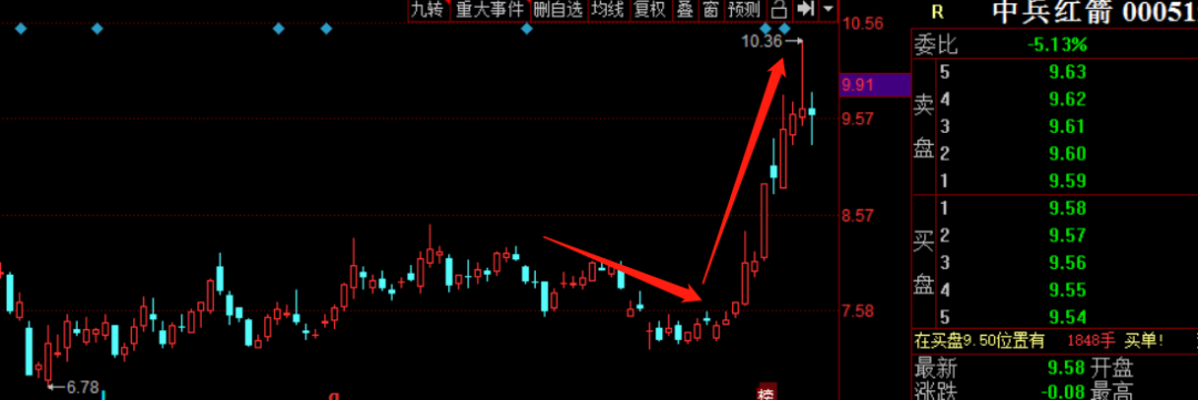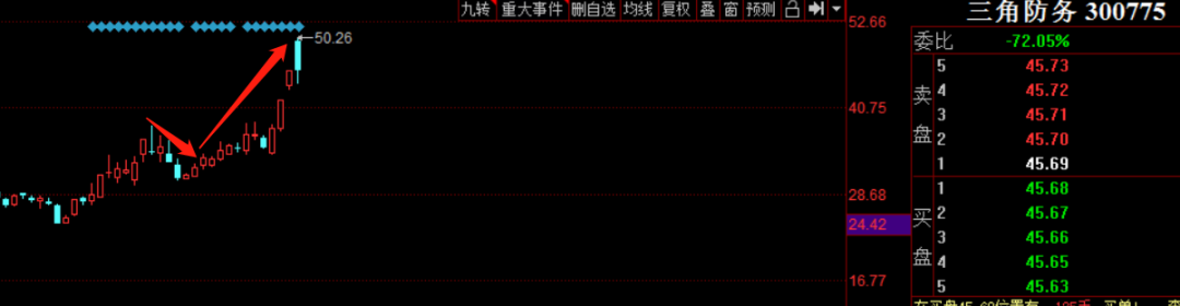看几个例子,也是我们重点先前重点关注的军工股票:中兵红箭、三角防务。
