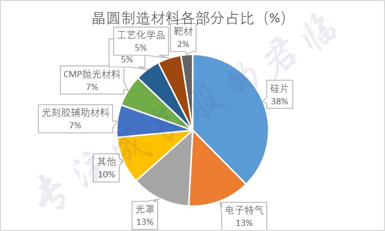 抛光液属于CMP抛光材料,光刻胶去除液属于光刻胶辅助材料,这两类材料在晶圆制造材料中的占比都在7%左右。
