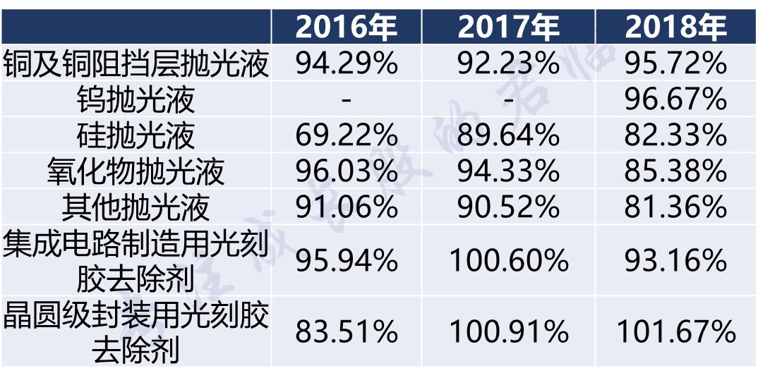 过去3年,除了主打的铜抛光液,其余产品的产能利用率都不高。