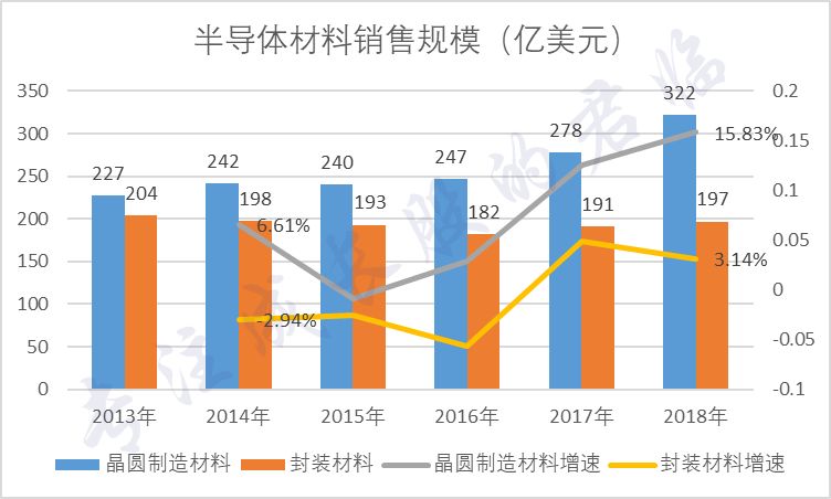 其中晶圆制造半导体材料销售额达到322亿美元,增长15.9%,要好于封测材料。