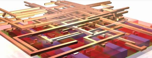 这还只是第一层结构,几十亿个晶体管相互连接其实会形成很多层结构,跟复杂的高速公路一样。