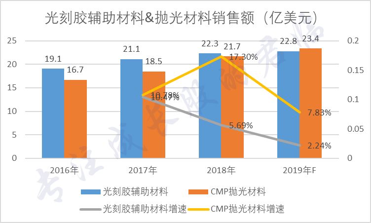 过去三年全球化学机械抛光液市场规模分别为11.0亿美元、12.0亿美元和12.7亿美元,2018年增速6%。
