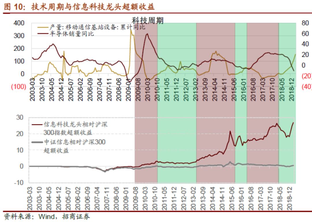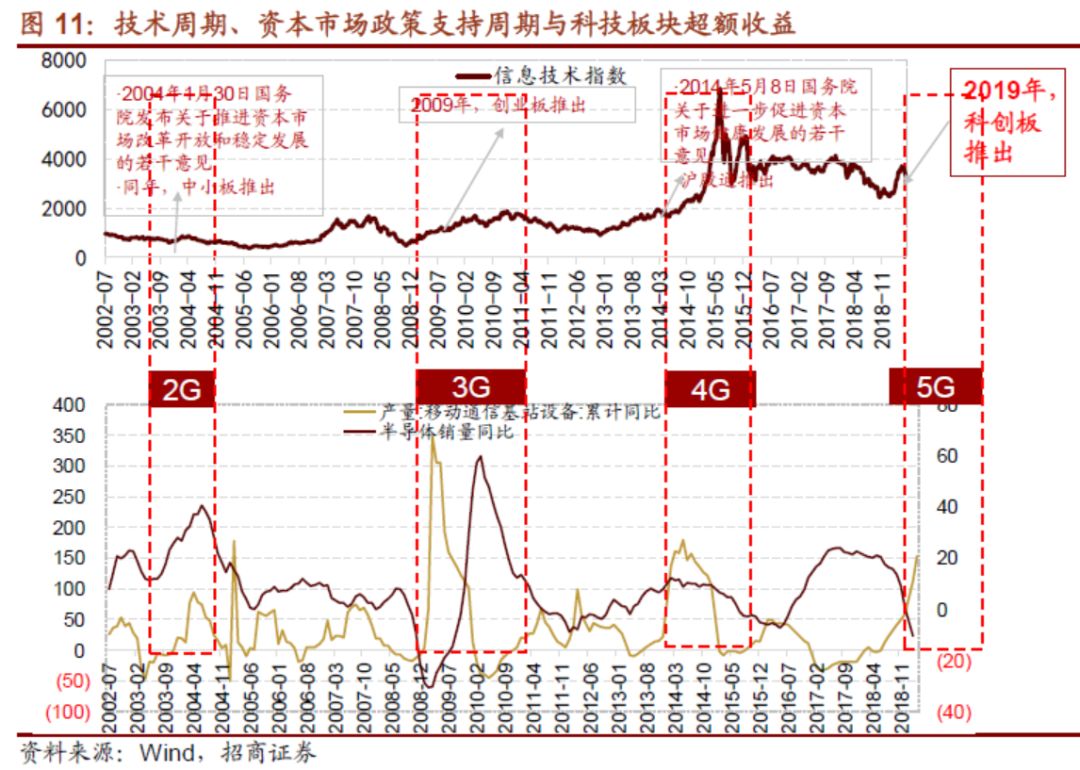 同时,如果每一轮科技上行周期叠加资本市场政策友好期,信息技术指数将会出现明显上涨。