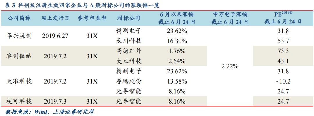 截止6月24日,科创板过会企业数量达到21家,其中注册生效的企业包括华兴源创、睿创微纳、天准科技以及杭可科技。