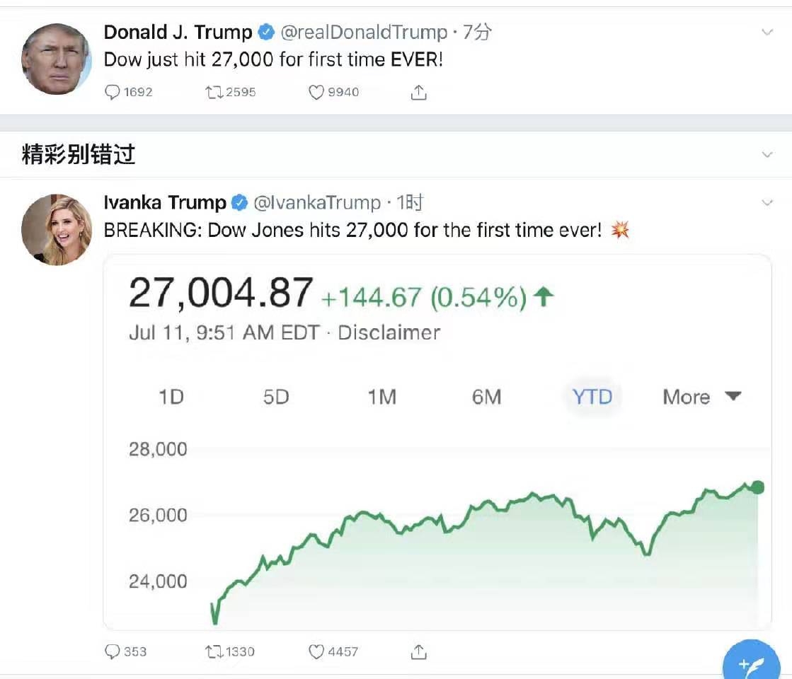 (道指创下历史新高,两父女庆祝,真是打战亲兄弟,上阵父女兵,)