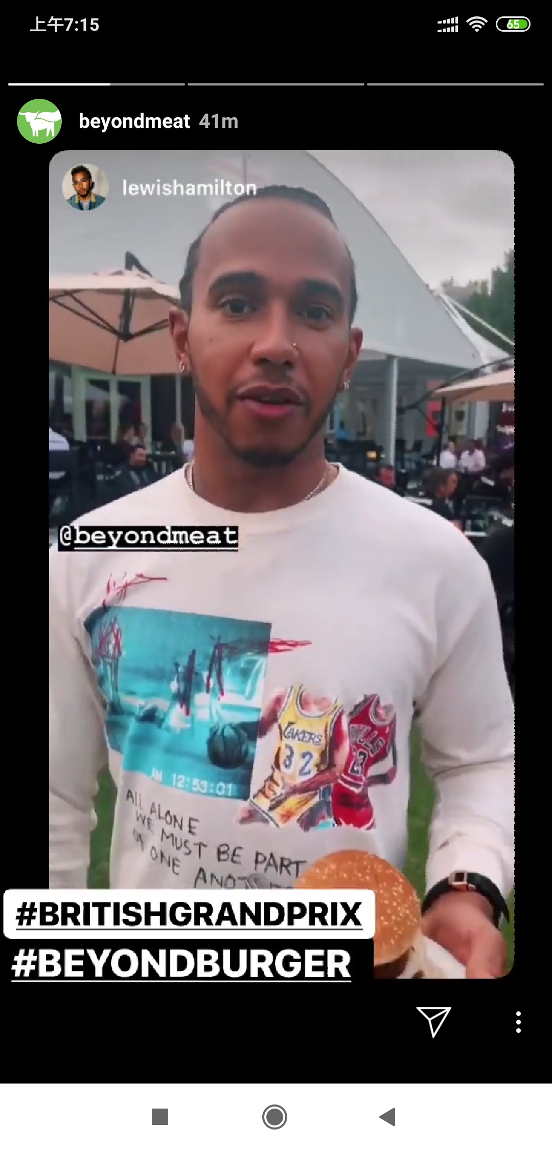 年薪4000万英镑的偶像害羞的地说:"Once you go Beyond Meat, you ain't going back."