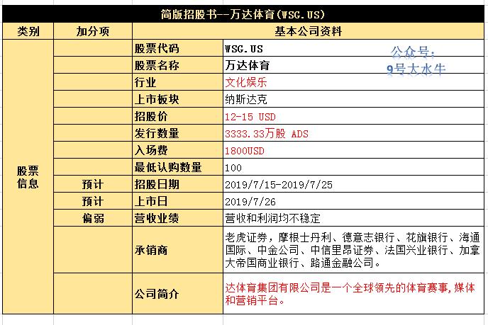 【万达体育 WSG.US】简版招股书