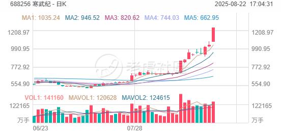 DeepSeek新版本引爆半导体、AI两大赛道,算力芯片、CPO等方向爆发, 寒武纪 涨停,股价超1243元,市值突破5200亿再创新高,距贵州茅台股价仅差近200元,此外,中芯国际涨超10%,新易盛创历史新高,海光信息、中科曙光、昆仑万维等多只权重股涨停。