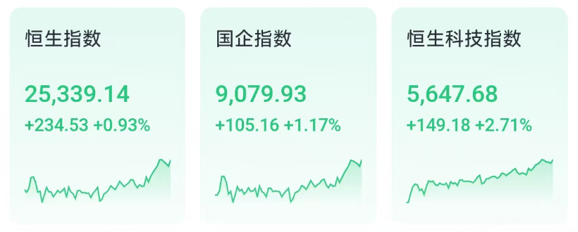 8月22日周五,港股三大指数午后持续走高,市场做多情绪高涨。恒生科技指数收涨2.71%,恒生指数、国企指数分别上涨0.93%及1.17%,国指重回9000点关口。全周来看,恒指累涨0.27%,国指累涨0.45%,恒科指累涨1.89%。