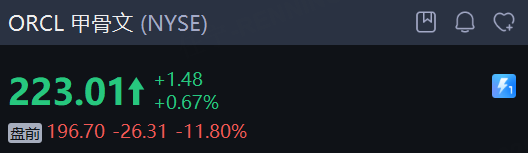 甲骨文盘前跌约12%。甲骨文第二财季业绩显示,公司营收、云业务收入均不及市场预期,季度自由现金流(FCF)为-100亿美元,预计年度资本开支将比先前预估的多出大约150亿美元。洲际交易所 (ICE) 数据显示,本月初,甲骨文公司的五年期信用违约掉期(CDS)已经攀升至2009年以来的最高水平。