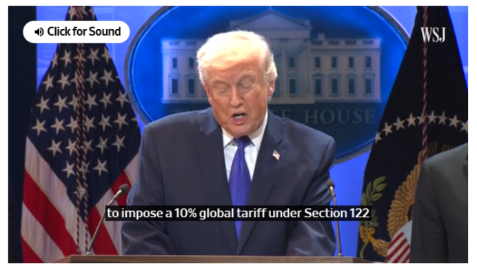 就在美国最高法裁定关税政策非法后仅仅几个小时,特朗普就赶紧宣布加征10%全球进口关税。