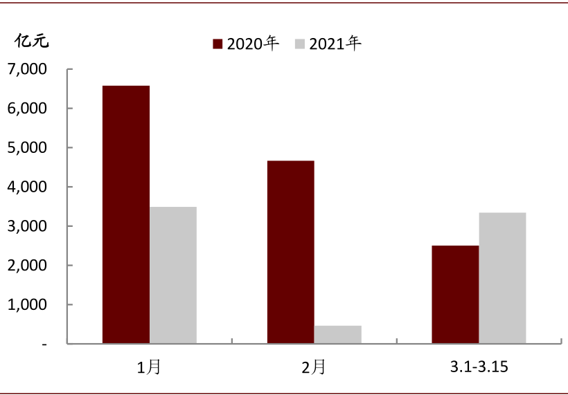 3月15日央行开展MLF操作,3月MLF到期1000亿元,央行进行等量续作,而此前市场存在一种预期,认为央行可能会超量续作MLF。