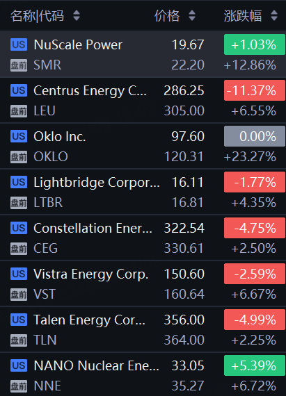 1月9日,美股核电股盘前集体拉升,Oklo涨超20%、NuScale Power涨超14%!消息面上:Meta Platforms签署数千兆瓦级核能协议,为人工智能数据中心供电。