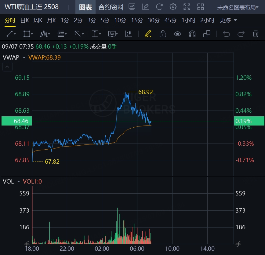原油期货小幅上涨,截止发稿,WTI原油涨0.19%,报68.46美元/桶;布伦特原油涨0.16%,报70.26美元/桶。