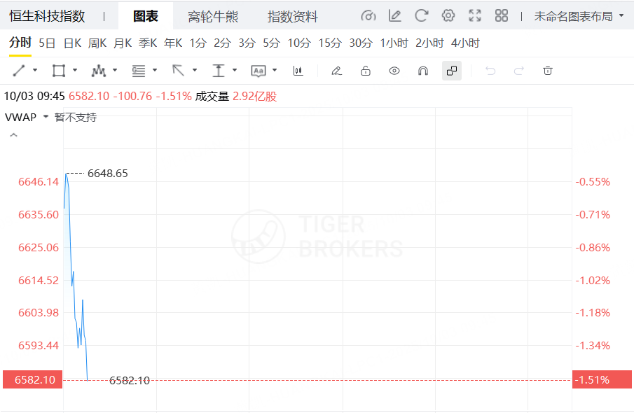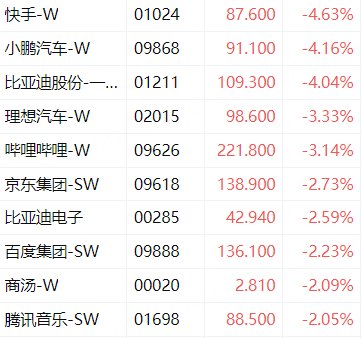 10月3日,恒生科技指数盘初跌幅扩大至1.5%,成分股中,快手-W、小鹏汽车-W、比亚迪股份跌超4%,理想汽车-W、哔哩哔哩-W跌超3%。