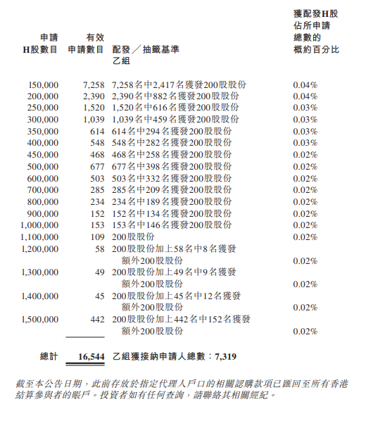 香港公开发售接获2,251.85倍认购,一手(200股)中签率2%,认购110万股始获稳派一手。国际发售录得10.03倍认购。