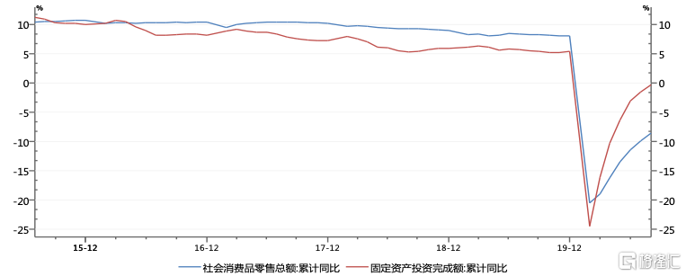 前文提到的房地产投资增速已经快速上升,以目前的房地产销售和新开工数据来推测,虽然受到疫情的冲击,但预计全年增速也不低于去年,但是截至8月累计消费增速仍为-8%,制造业投资和民间投资都还是明显的负增长,这对促就业和惠民生都不利,对科技型企业的发展也有一定的掣肘。